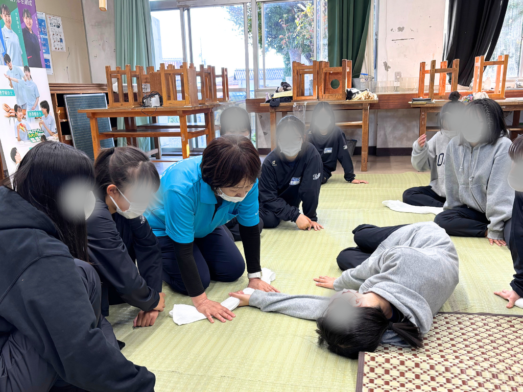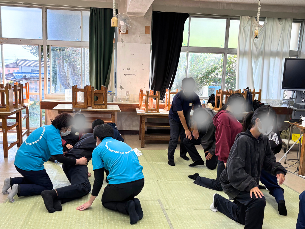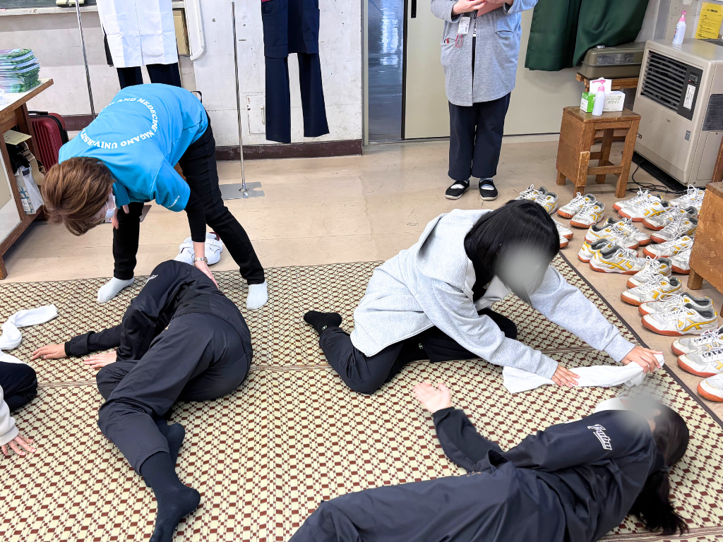 長野保健医療大学は、「看護に関する体験」というテーマでヒューマンブースに参加しました。 看護学部看護学科の教員4名が、脈のはかり方、起き上げり方、立ち上がり方、介助の方法を生徒さんにお伝えし、生徒さん同士でペアになり実際に看護体験をしていただきました。 今回の体験を通じて、看護師の仕事や看護に少しでも興味を持ち、生徒さんが将来のキャリアを考える上での参考になっていれば幸いです。