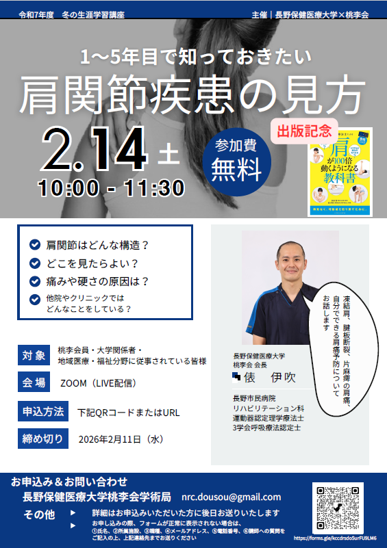 長野保健医療大学×桃李会主催の「令和7年度 冬の生涯学習講座」を開催いたします。